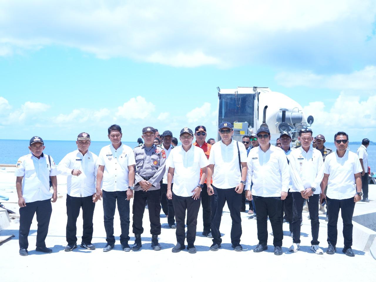 Ia meninjau langsung progres pembangunan dermaga dan fasilitas pendukung pelabuhan yang menjadi salah satu proyek strategis daerah untuk membuka akses konektivitas antar pulau di wilayah Banggai Laut.