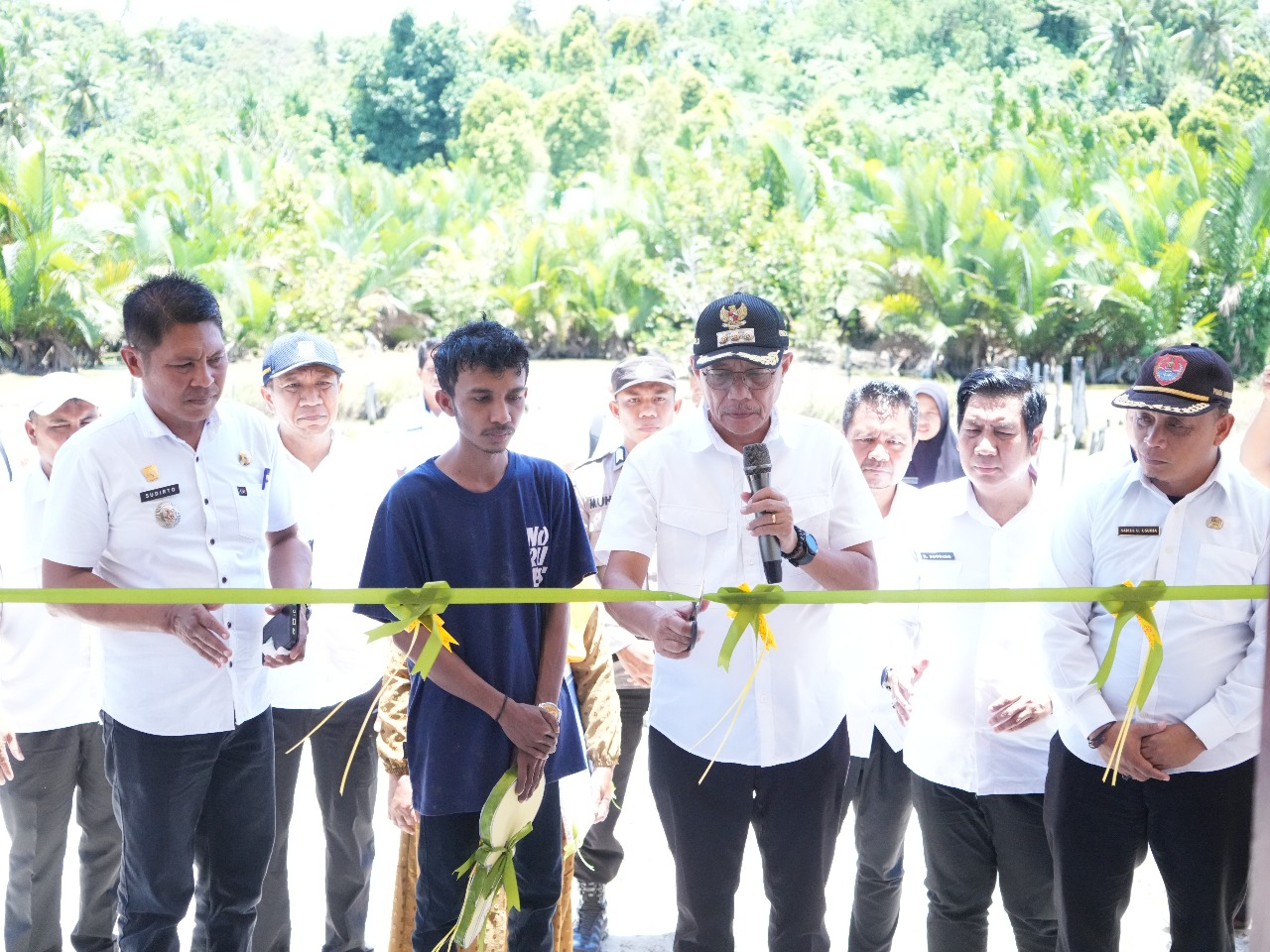 Selain meninjau pekerjaan fisik, Bupati Sofyan juga menyerahkan secara simbolis rumah baru bagi warga yang terdampak pembangunan pelabuhan.