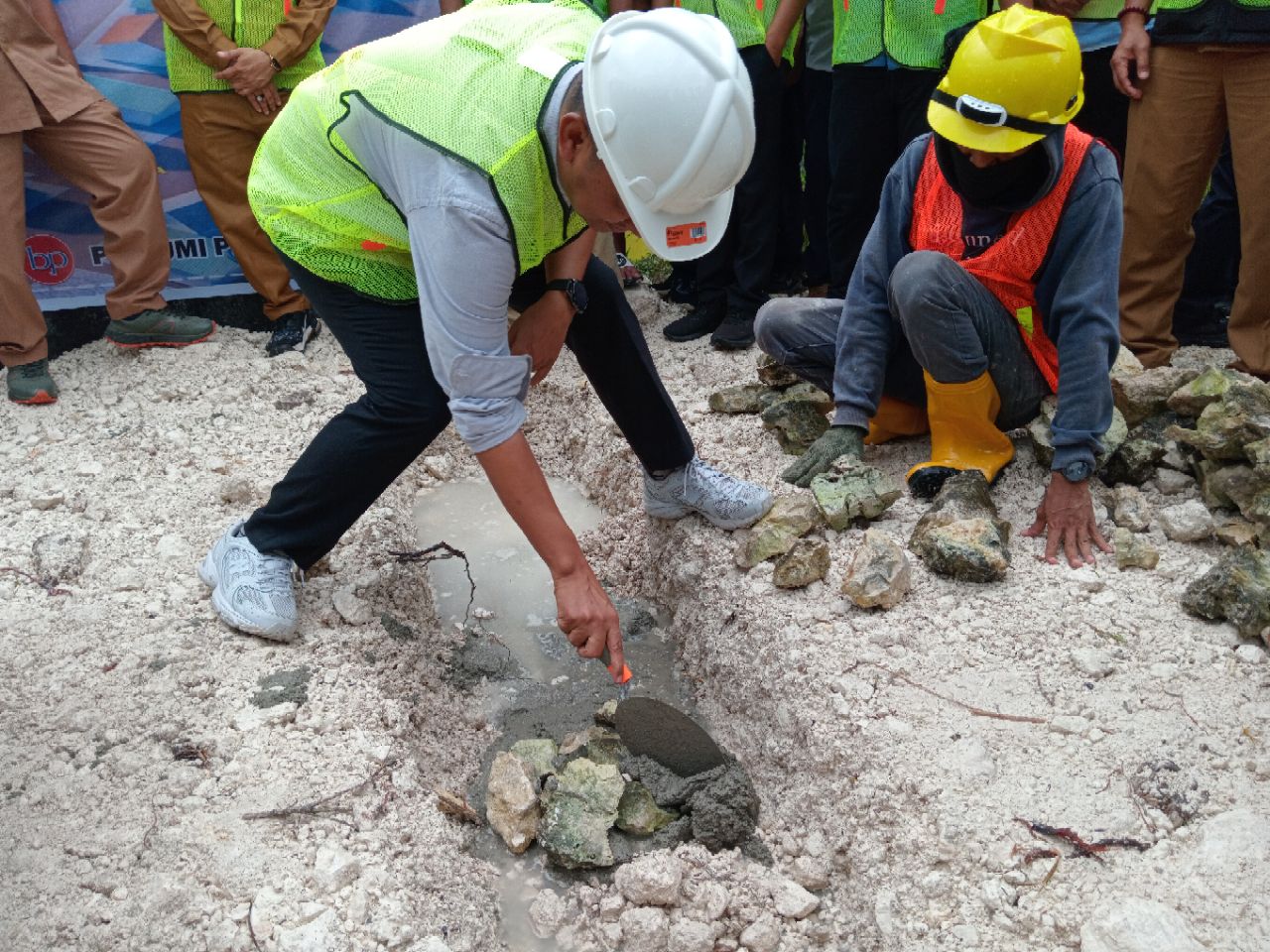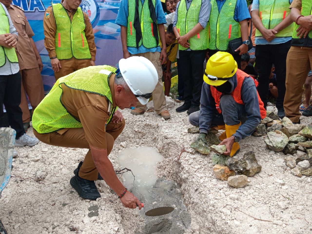 Hal ini ditandai dengan peletakan batu pertama yang dilakukan oleh Bupati Sofyan Kaepa dan Kepala UPT Pelabuhan Perikanan Nusantara (PPN) Kwandang Gorontalo Utara Yanwar Amri Yasman di Desa Kalupapi, Bangkurung, Selasa (10/2/2026).