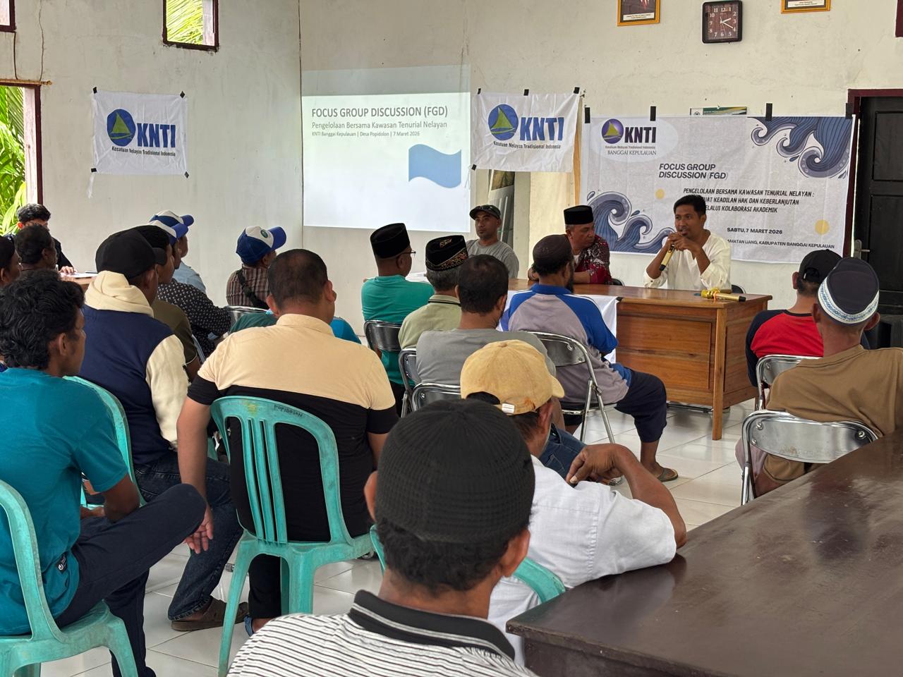BANGGAI TERKINI, Bangkep – Kegiatan Focus Group Discussion (FGD) pengelolaan bersama kawasan tenurial nelayan pesisir dilaksanakan pada 7 Maret 2026 di Desa Popidolon, Kecamatan Liang, Kabupaten Banggai Kepulauan.