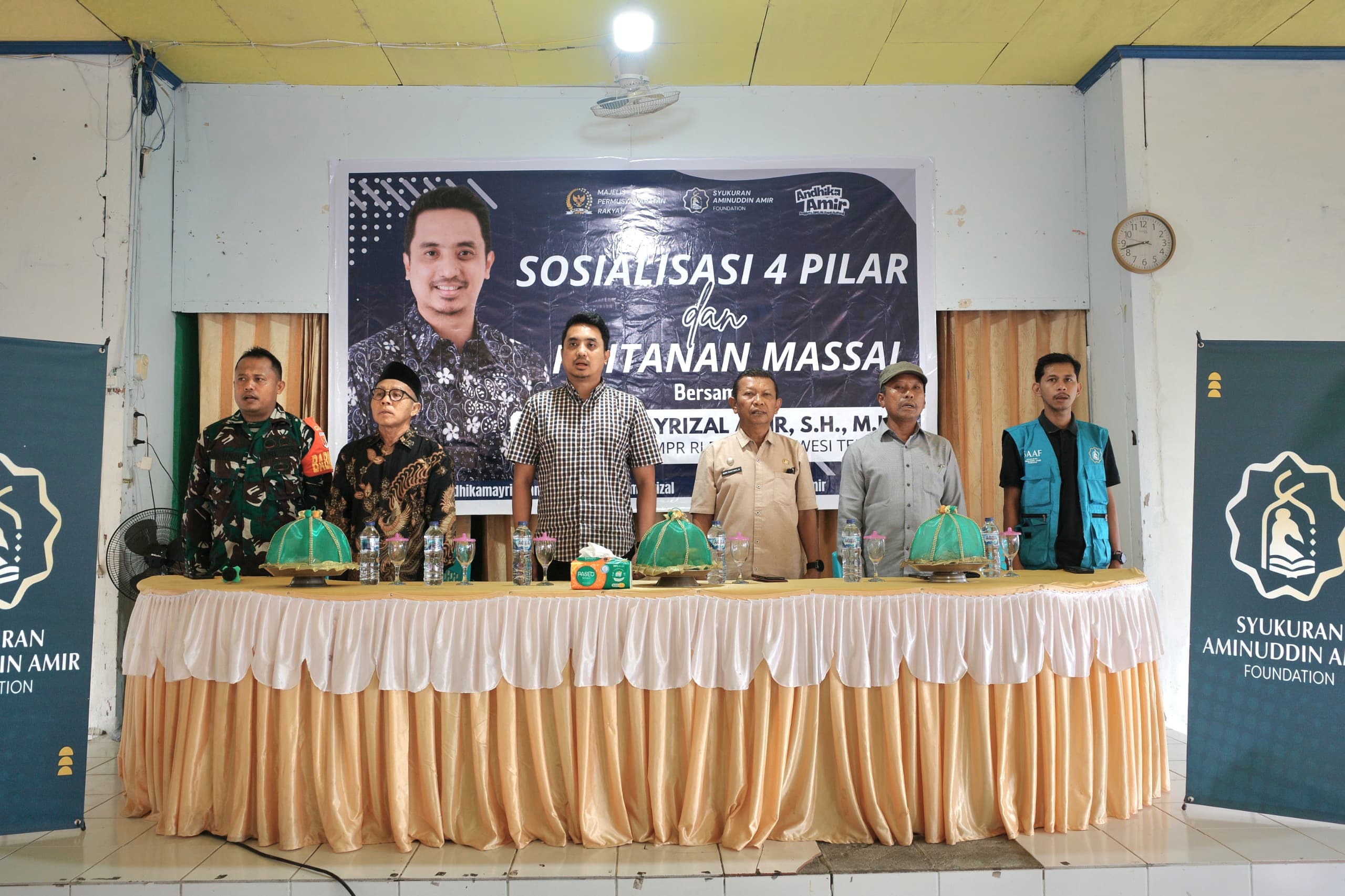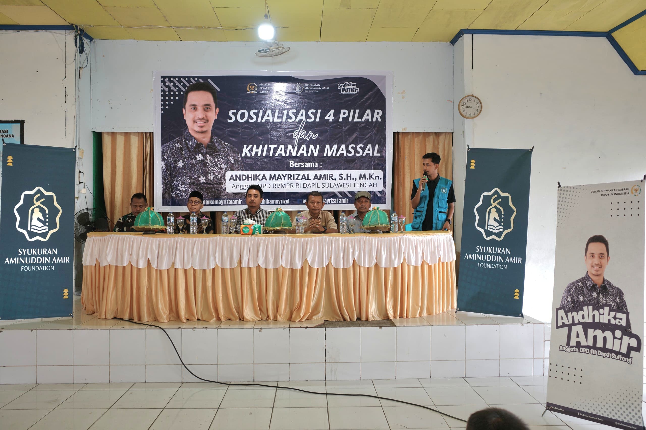 Kegiatan Sosialisasi 4 Pilar sekaligus dirangkaikan dengan khitanan massal gratis di Desa Rusakencana berjalan dengan lancar, turut hadir Andhika Amir Senator asal Sulteng, Kapolres Toili, Bintara Pembina Desa (Babinsa), Sekretaris Kecamatan Toili serta tokoh masyarakat setempat.