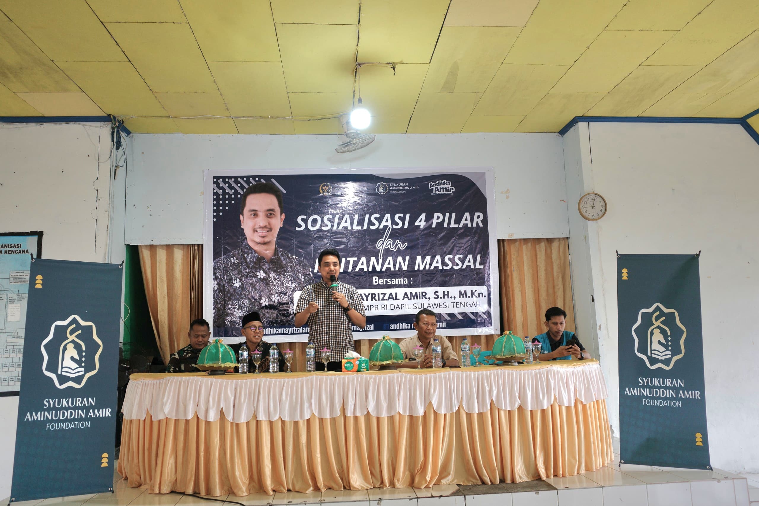 Kegiatan Sosialisasi 4 Pilar sekaligus dirangkaikan dengan khitanan massal gratis di Desa Rusakencana berjalan dengan lancar, turut hadir Andhika Amir Senator asal Sulteng, Kapolres Toili, Bintara Pembina Desa (Babinsa), Sekretaris Kecamatan Toili serta tokoh masyarakat setempat.