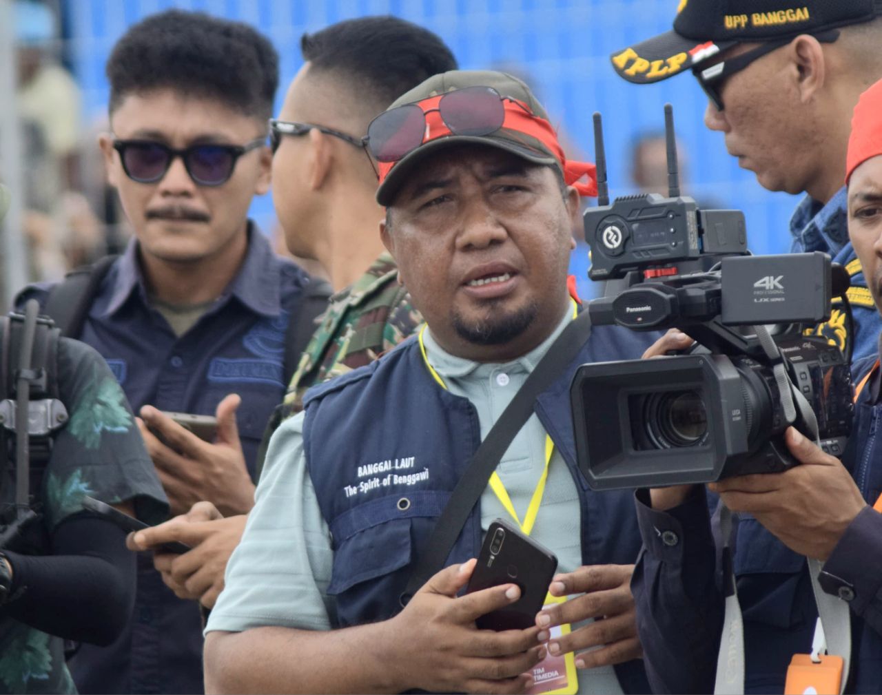 Kepala Bidang Informasi Publik Dinas Kominfo, Ratno Makasau bersama staff saat live streaming di Festival Tumbe 2025 (Foto : Imang/Istimewa)