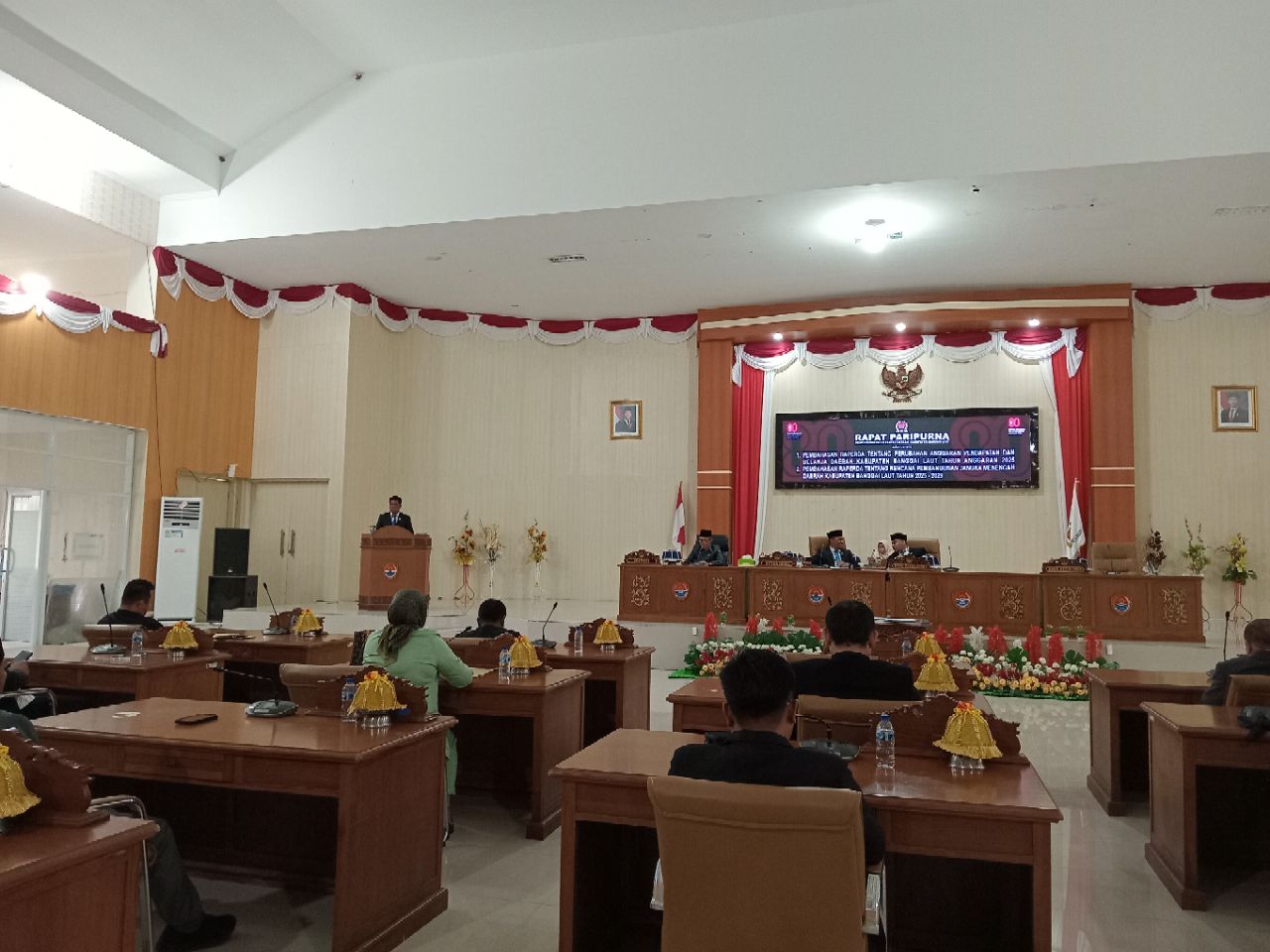 Kesepakatan itu disampaikan dalam rapat paripurna DPRD Banggai Laut, Senin 15 September 2025, yang dipimpin Ketua DPRD Patwan Kuba didampingi Wakil Ketua Jamaludin R. Bunsiang.