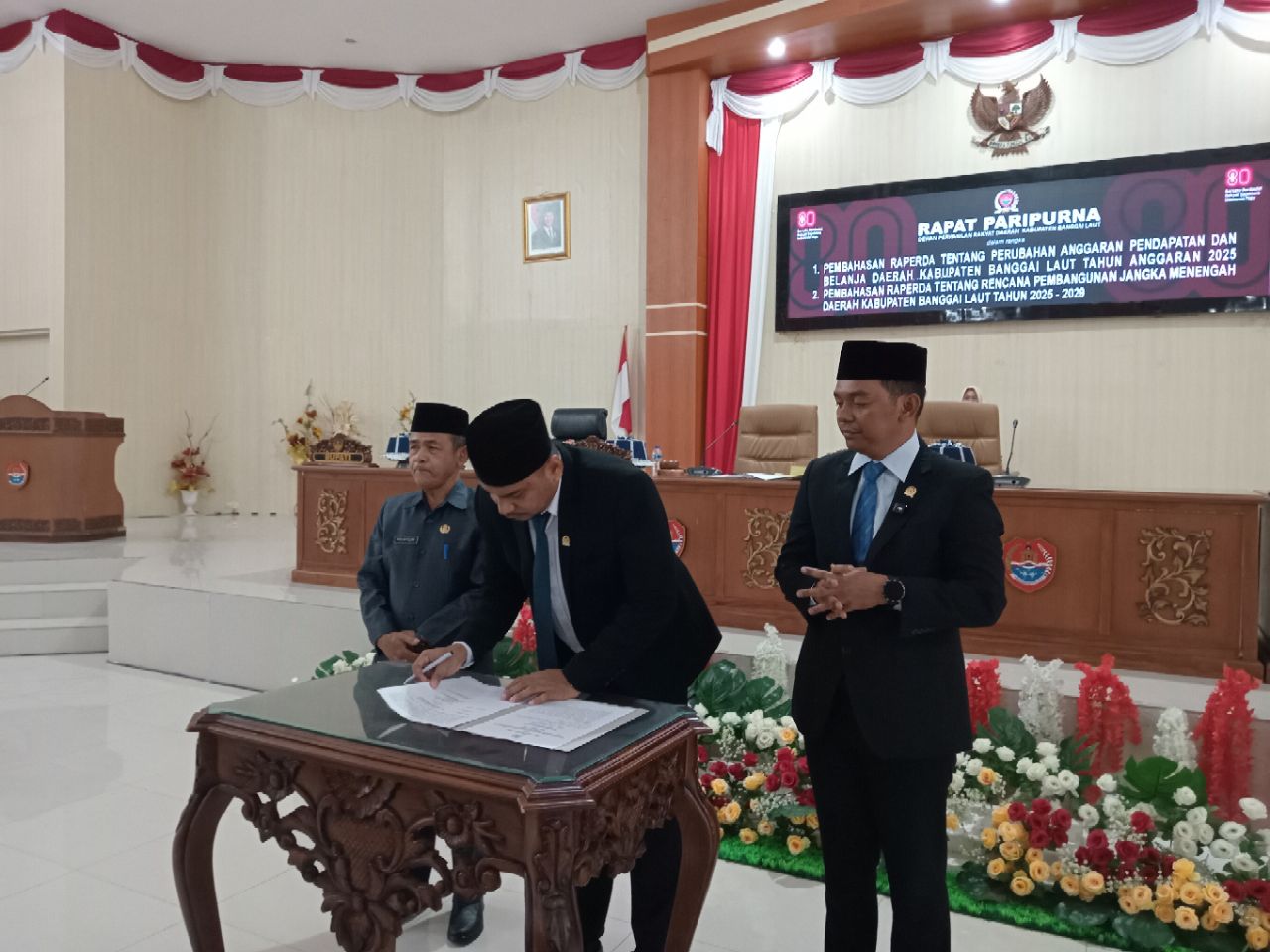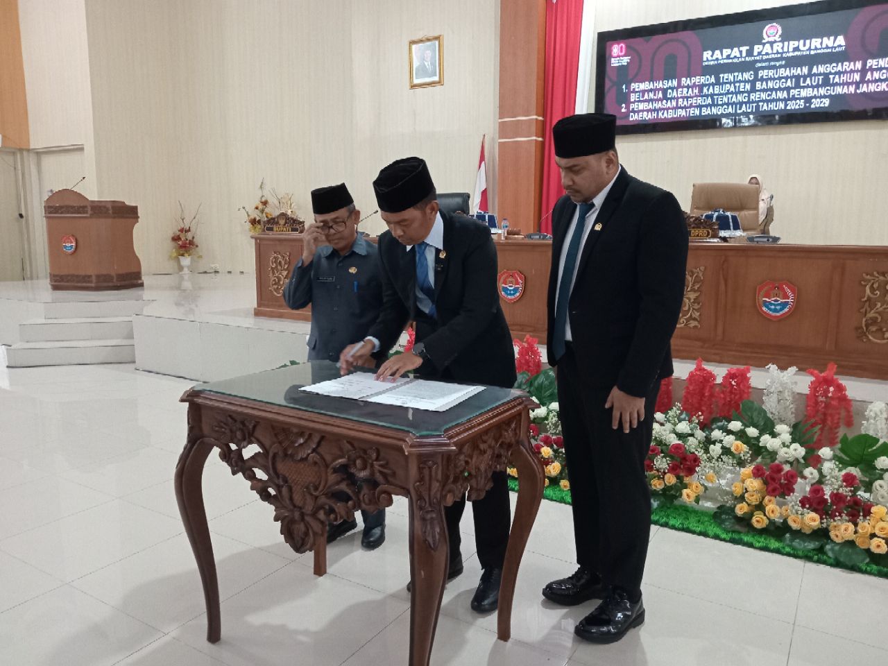 Ketua DPRD Patwan Kuba tandatangani Raperda pembahasan Perubahan APBD 2025 dan Raperda RPJMD (Foto: Nomo/BanggaiTerkini)