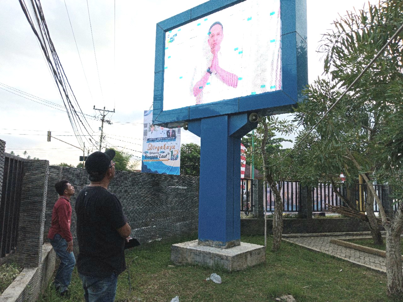 Sekretaris Kominfo Fadli Lapene ketika memantau video tron di Taman Kota (Foto : Nomo/BanggaiTerkini)