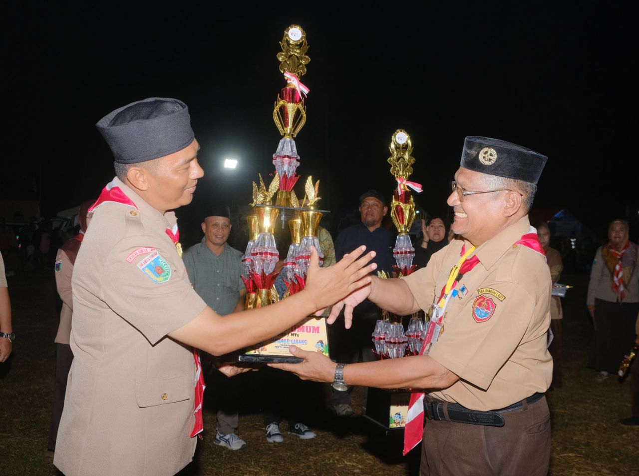 Ia menyampaikan bahwa keberhasilan Jambore 2025 ini merupakan hasil kerja sama seluruh jajaran pengurus Kwarcab, Ketua Panitia Fauzan Safian Kaepa, kwartir ranting, pembina, relawan yang terlibat, dan tentunya dukungan penuh dari Bupati Sofyan.