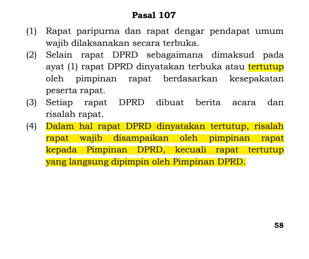 “Tapi kalau rapat tersebut tertutup untuk umum, berarti hanya lembaga DPRD dengan Pemda. Artinya pihak luar tidak bisa masuk, termasuk teman-teman wartawan,” ujarnya.