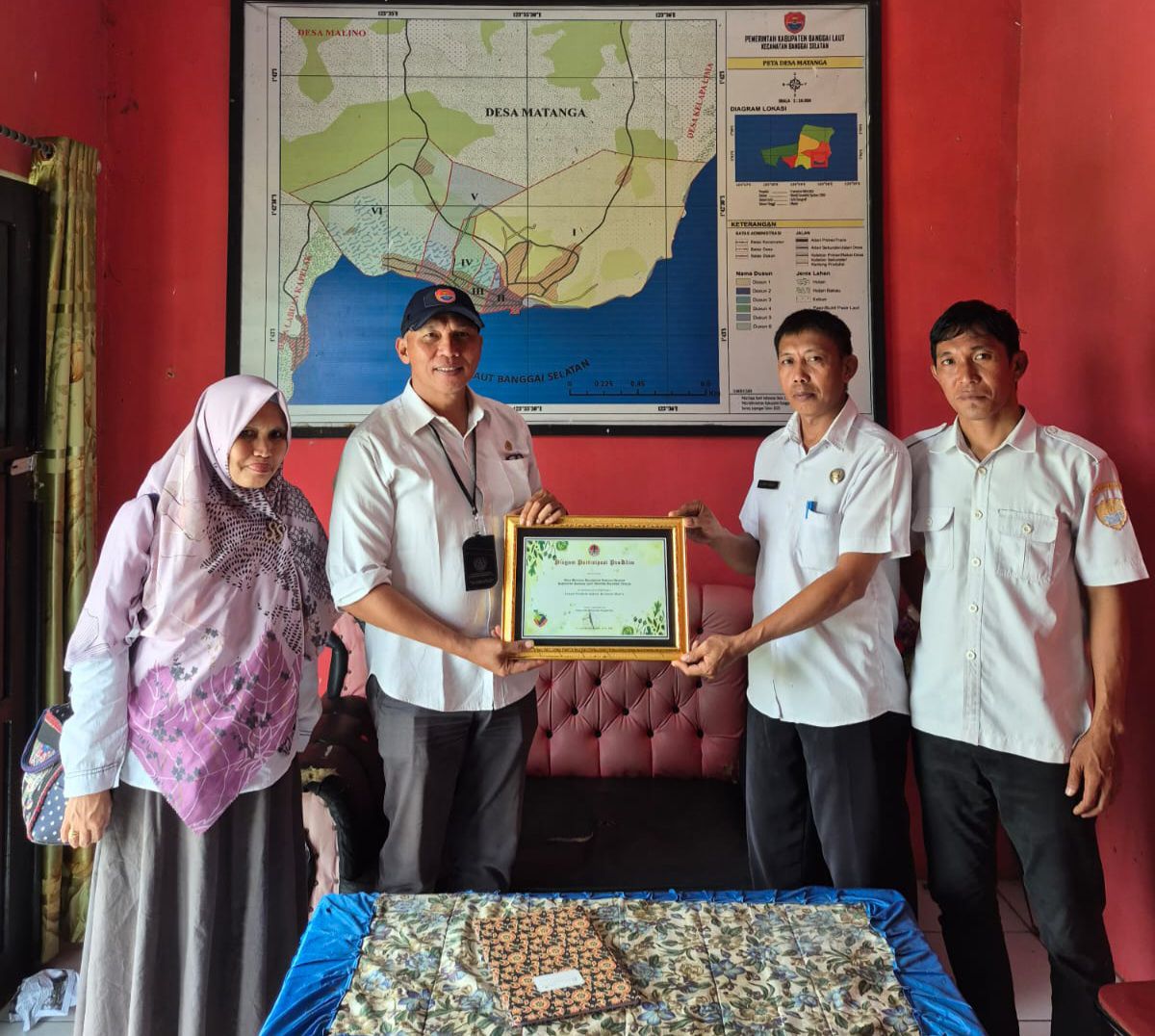 Kepala Dinas Lingkungan Hidup, Steven W. Musa menyerahkan piagam penghargaan PROIKLIM di desa Matanga, Banggai Selatan (Ist)