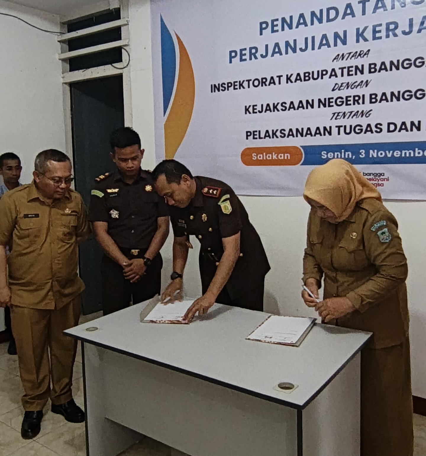 Kerjasama ini bertujuan memperkuat dukungan dalam pelaksanaan tugas dan fungsi masing-masing instansi antara Inspektorat Bangkep dan Kejari Banggai Laut.